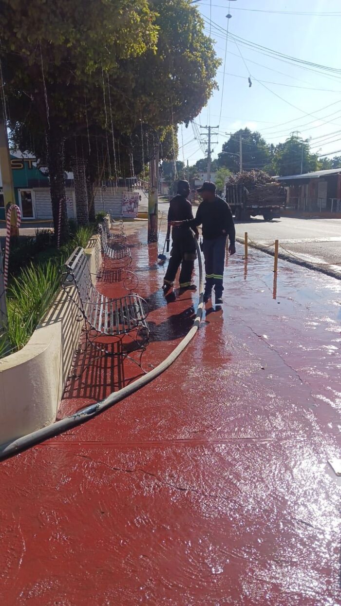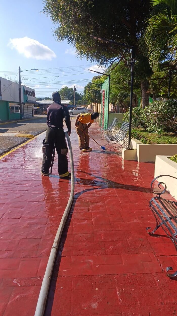 Con el objetivo de mantener los espacios públicos en óptimas condiciones para el disfrute de las familias, la Junta Distrital de Jaibón Pueblo Nuevo coordinó este sábado una intensa jornada de lavado y mantenimiento en el parque principal. Esta acción forma parte del compromiso continuo de la administración por preservar el ornato y garantizar un ambiente higiénico y acogedor para todos los munícipes durante la temporada festiva.