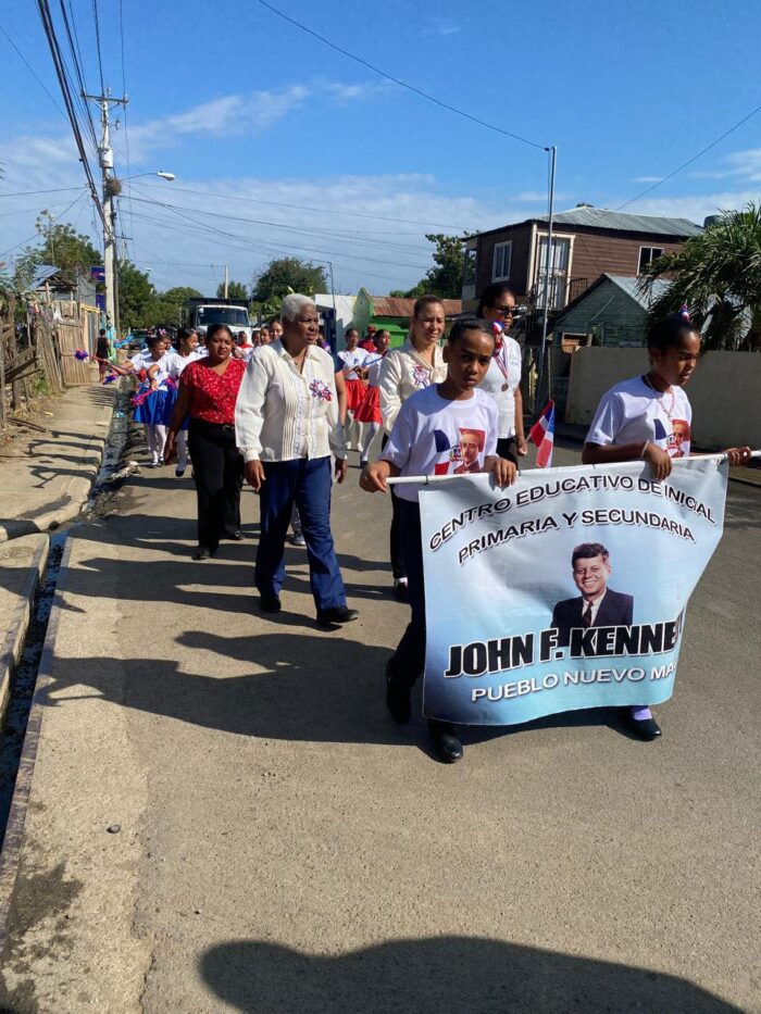 Ayer, en un emotivo evento lleno de patriotismo y celebración, la Junta Distrital de Jaibón Pueblo Nuevo Mao tuvo el honor de unirse al desfile organizado por la comunidad educativa de la Escuela John F. Kennedy. Este desfile, realizado en el marco de las festividades de nuestra independencia, fue una oportunidad para reafirmar el compromiso de nuestra Junta con la historia, la cultura y los valores que definen nuestra nación.